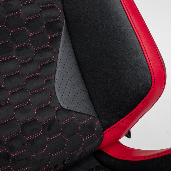 The RRX delivers both style and performance. With HD vinyl inserts and an aggressive “X” stitch pattern, it provides a bold, standout look, and feel. Its lateral bolsters give the support you need for spirited driving, while the plush design keeps it comfortable for daily use.